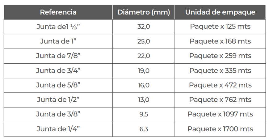 Cordón de celdas cerradas diseñada para cubrir y limitar la profundidad para el sellado de todo tipo de juntas de dilatación.